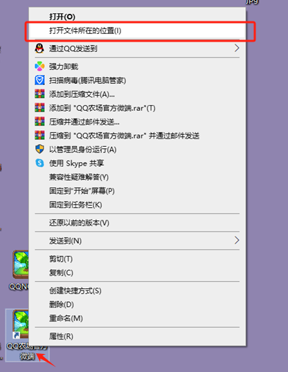 1、右键点击桌面快捷方式【QQ农场官方微端】选择【打开文件所在位置】即可看见微端所有相关文件。