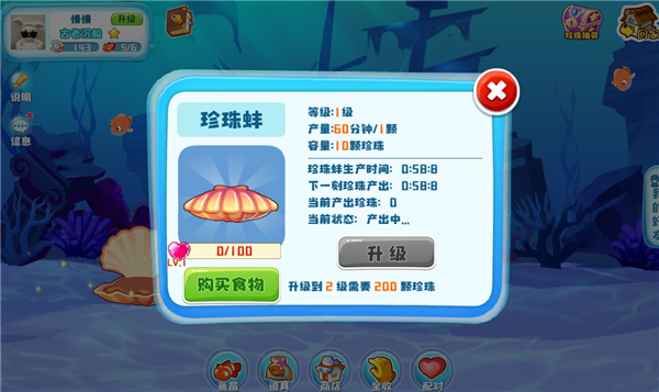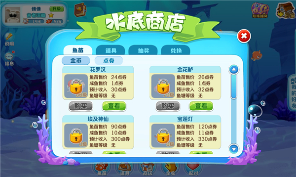 (1)收获鱼苗:玩家可以养殖点券鱼苗,收获后将获得珍珠。