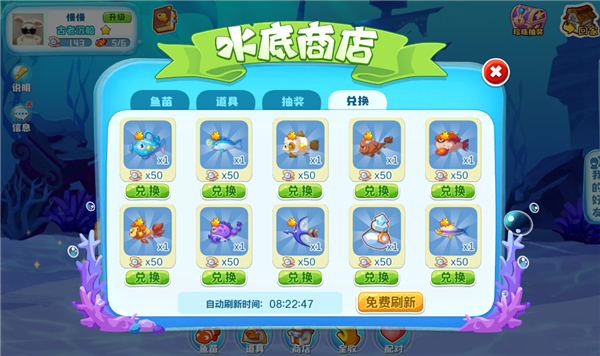 (3)兑换:玩家可以使用珍珠在商店兑换鱼碎片。