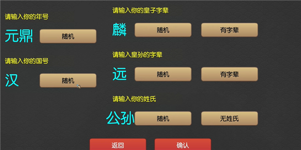 1、进入逐鹿问鼎君王成长计划游戏主界面,点击新游戏,进行初始设定,不想设定可点击随机进行设定;