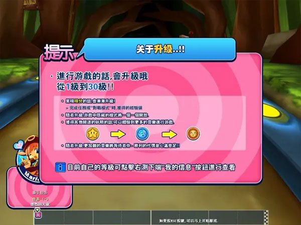 即速度竞赛,看谁最快到达终点。在游戏的过程中,随着 COMBO 的增多,可以看到右方的加速槽颜色由灰转慢慢转黄,等到整个加速槽变成黄色,按下 CTRL 即可加速,同时左下角滑稽的动作和升高音调加速的音乐也让人忍俊不禁。加速是有时间限制的,也就是过了加速的时间要重新积累 COMBO 数;另外如果跌倒了,损失可比没加速还要严重。