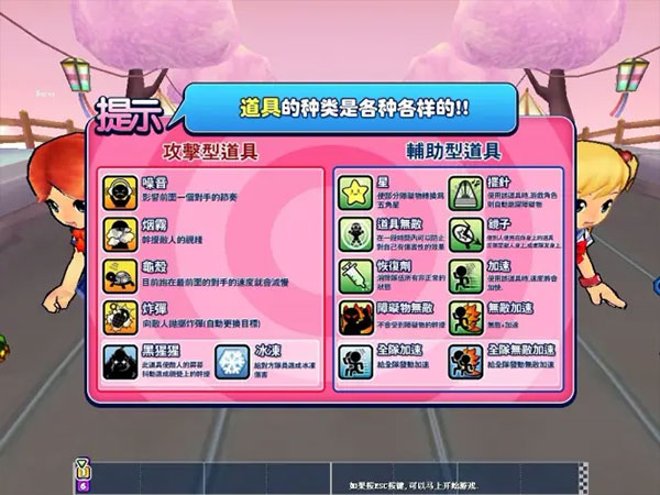 按照道具性质,可以分为竞速模式基础模式和道具模式;