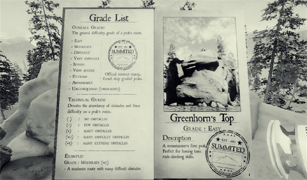 初次挑战Great Gales的高峰收集时,你将空手攀登两座教学山峰:Greenhorn's Top用于练习摆荡技巧,Paltry Peak则是测试基础攀爬与无冰爪跳跃的演练场。
