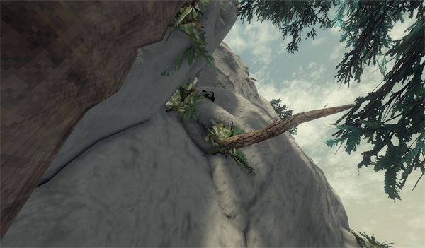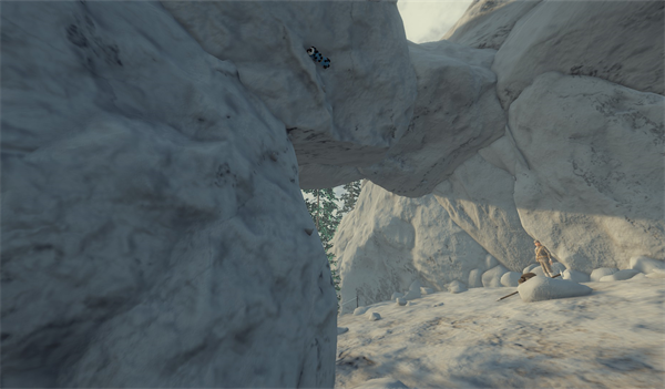 5、玩家的手接触可攀岩地方就会自动吸附,当玩家只有一只手吸附时,就可以利用身体具有的惯性进行左右摇摆,随后抓住时机,用另一只手抓住,随后便可以依照此法进行攀岩了。