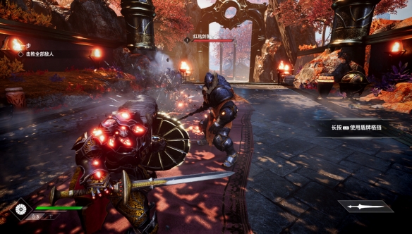 2、Shield Throw(暂译:盾牌投掷):需要甩开挡路的敌人,或对付离太远的敌人吗?长按L1瞄准你的盾牌,接著按下R2将盾牌向敌人投掷。投掷盾牌可以伤害敌人并加以击倒,只是要记得盾牌投掷具有短暂的冷却时间,所以请明智运用。