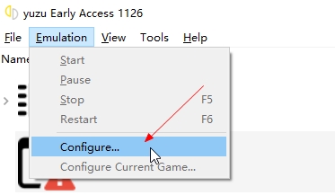 5、接着在上方选择emulation,configure,进入设置;