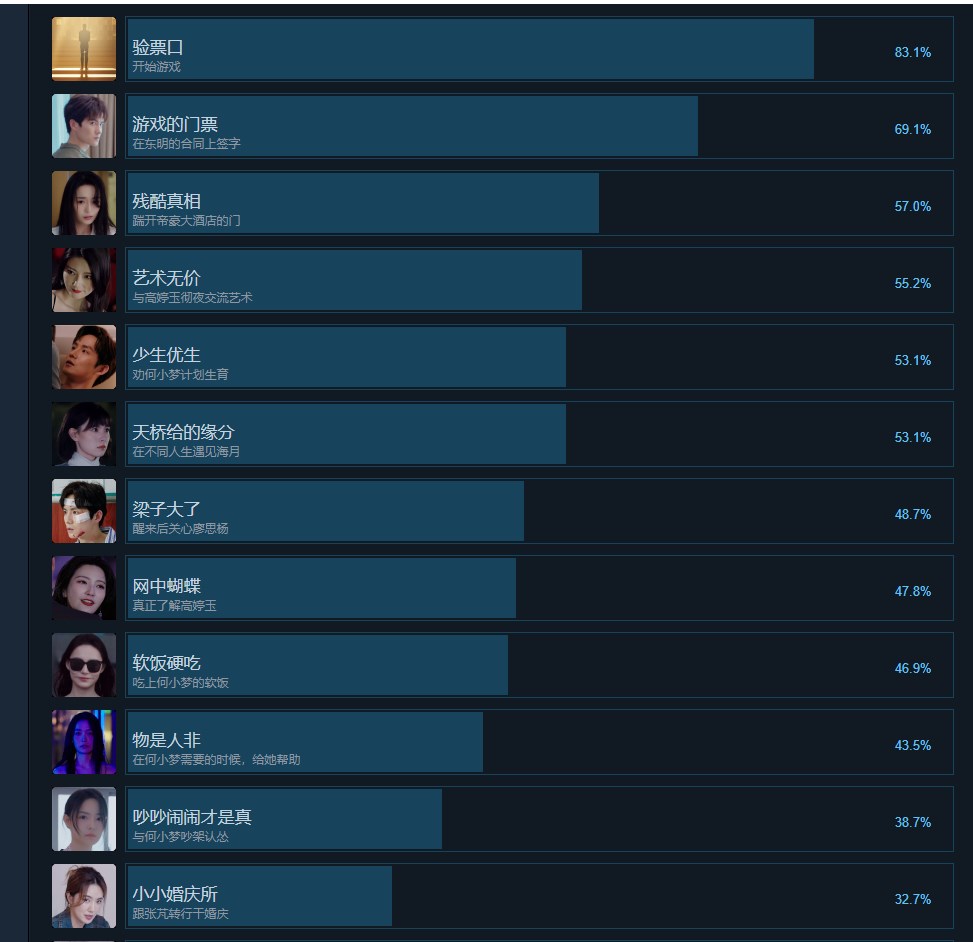 此外,名利游戏中的主人公从电影学院的杰出学生到社会的艰苦奋斗到从事业的低谷到高峰的转变,还也面临着道德和感情的重大抉择,并且在这个过程中游戏主角与各种人物——如前女友何小梦、制片张芃、影业成功人士廖思杨以及其他行业内的重要人物——的复杂互动构成了一个关于名利、爱情、忠诚和背叛的多层次故事。不仅如此,名利游戏更是有着情感深刻的故事和角色以及体验跌宕起伏的人生,只为让玩家们沉浸式体验到追名逐利的各种故事。