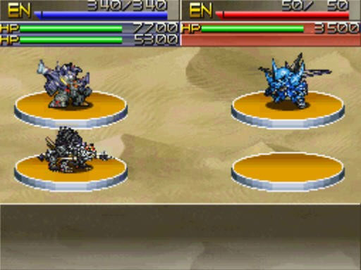 在场上的机体受伤的时候,电脑可能会换上大地魔龙来。这台原作中母舰级的机体相当禁打,最好速战速决以免给对手留下喘息的机会。总的来说对方的机体中没有特别强力的,本战还是不算太难的。