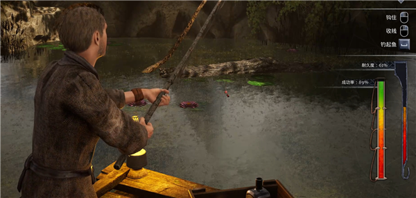 2、有鱼饵的话,来到钓鱼的地方,按E进行钓鱼。