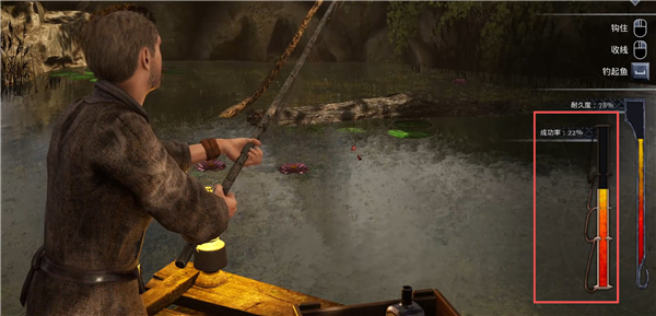 6、等到成功率过了70%左右,就可以把鱼钓起来。