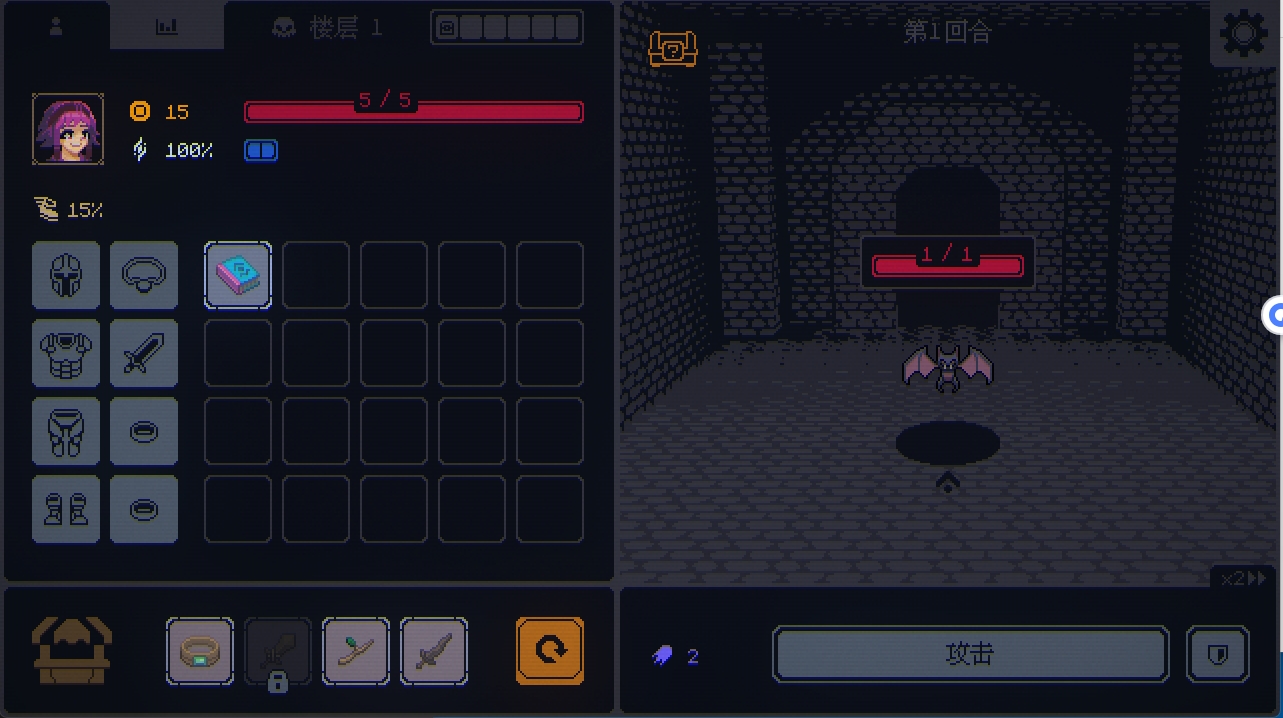 7、玩家要通过点击来装备武器,攻击秘塔里的敌人;