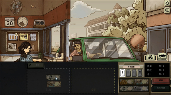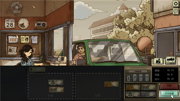 游戏里充满了道德选择,比如你可能会遇到司机说家里有急事需要赶路,或者有人试图行贿让你放行。每一个决定都可能影响到自己的安全和孩子的未来,有时候真的很难抉择。游戏还很有代入感,90年代的视觉风格让我感觉回到了那个时代,蓝绿色调的画面和纸质感的设计让人印象深刻。