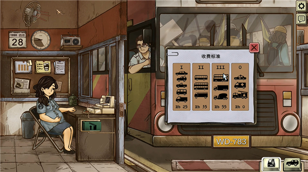 最近我玩了一个很有意思的游戏叫《1998收费员的故事》,感觉挺有挑战性的。游戏里的主角是个怀孕的收费员,名字叫黛薇,她生活在东南亚一个叫做贾纳帕的国家,这个国家正处在崩溃边缘,局势非常动荡。为了养活自己和即将出生的孩子,黛薇每天都要在收费站检查车辆、核实证件,决定谁可以通行。