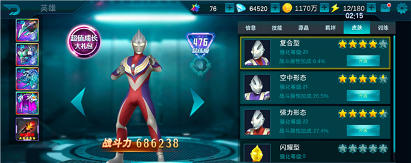 无论是攻击、防御、血量,还是技能效果,迪迦奥特曼的表现都已超出正常史诗级角色的强度,整体实力甚至超出了不少传说级角色,堪比较弱的星穹战士!其最为强大的形态为空中型,在控制,输出,效率各方面都有着全面的表现。