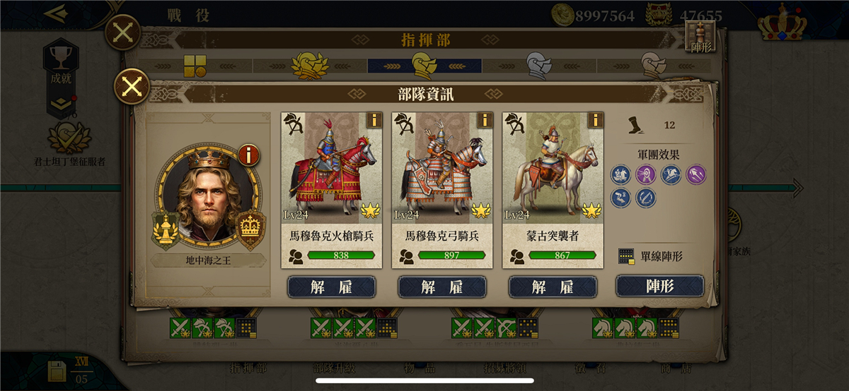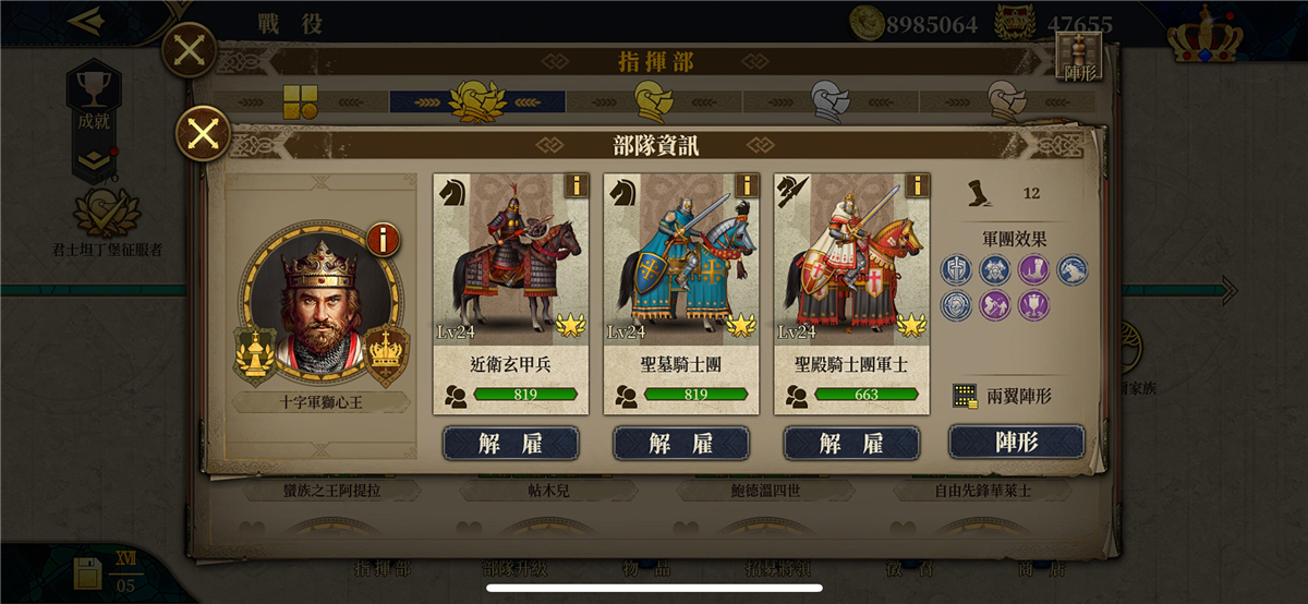 2、如果玩家有狮心王理查一世,则可直接选择培养圣殿骑士团军士而非怯薛。顺带解决红色宝石产出问题。