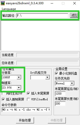 打开软件,先设置输出路径和任务属性,如果已经拖入字幕再改属性的话就不生效了。
