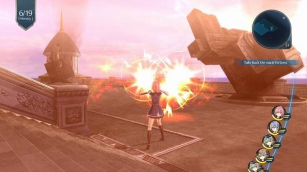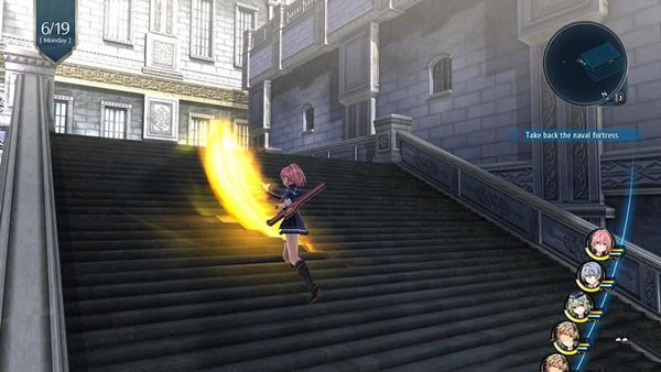 战斗是《轨迹》系列独特的战斗系统“AT战斗”,根据画面左边表示的行动顺序的AT栏,角色按顺序展开指令战斗。
