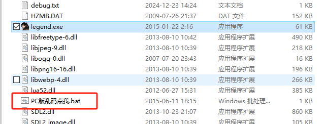 5、默认为安卓版,PC端运行会出现乱码,可执行“PC版乱码点我”来解决,WIN7以上系统使用兼容 WIN95模式 运行。