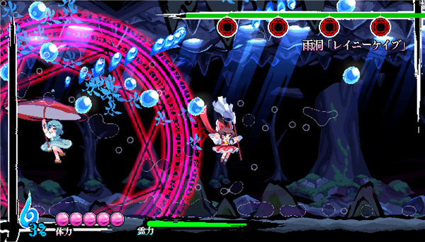 1、带有东方project弹幕特点的快节奏的战斗系统;