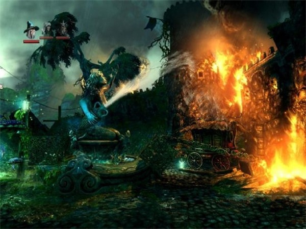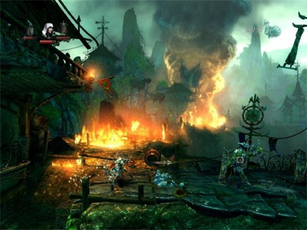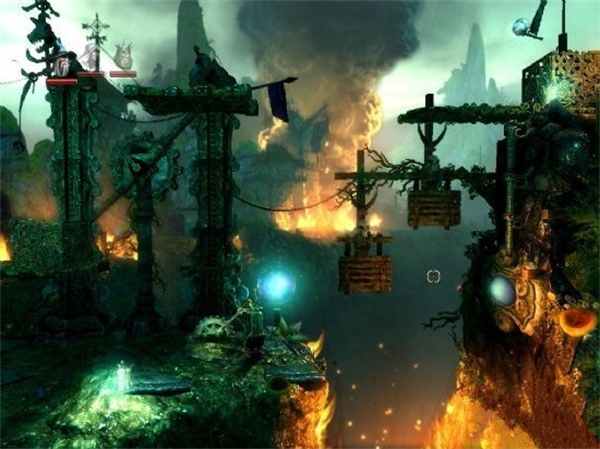 三位一体,游戏的主角可以在魔法师,弓箭手与战士之间进行切换。魔法师的能力是召唤箱子和木板并且操纵超能力来控制物品和弱小的怪物,弓箭手拥有强力的远程攻击能力,另外有短时间潜行和绳索攀爬的能力,战士拥有强大的力量,可以摧毁一些其他角色无法打破的障碍物。本攻略的目标是全物品。