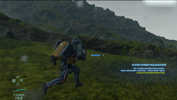 虽然Sam负重很高,但也能使用工具灵活移动,借助外骨骼可以快速奔跑、高跳,而获得拖车、摩托车等也可以大大提高移动能力。玩家可以获得一件悬浮小载具,该载具像一个飘在空中的小推车,可以分担Sam的重担,而且也可以很容易地带在身后。不仅如此,该载具也可以像悬浮滑板一样载着玩家快速滑行,不过只能从高处滑向低处。