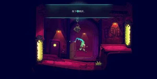 6、使用黄色杆子可以抵达高处,跳跃的高度与艾克的位置无关,松开按键即可正常往上跳。