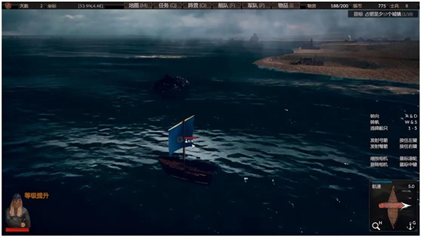 航海部分用的是类似大航海的系统,调整船帆的方向顺风行驶就会加快移动速度,碰到礁石、岸边、船只等船还会扣血,体验还不错,特别是初期满大街海盗横行的时候避开他们最有用。