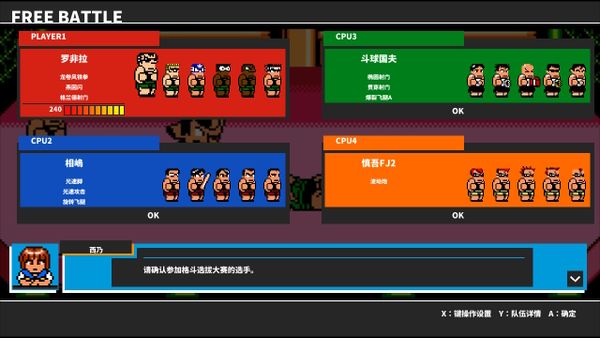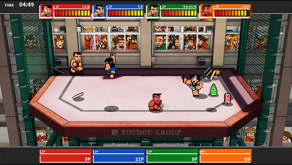 系列的操作感,从FC的双截龙,热血系列一路下来,已经非常成熟。基本操作并不复杂,上手不困难,各种细微的变化不少。道理上,大乱斗有聚会游戏的性质,玩没玩过都可以拿起来搓,但这个瞎搓很容易被教训,对动作和角色的熟悉程度,在场面上的差别体现得比较明显。