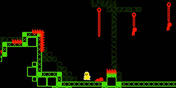 3、当你靠近红色链条,它就会掉落“红色岩浆”,注意避开。