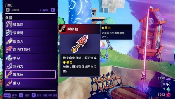 装备至多2种武器并使用武器对应的游戏风格来施放威力无穷的隐藏攻击方式。随机应变,在飞跃途中使用形形色色的被动馈赠、强力饰品以及可掉落怪鱼(?!)来克服重重难关。”
