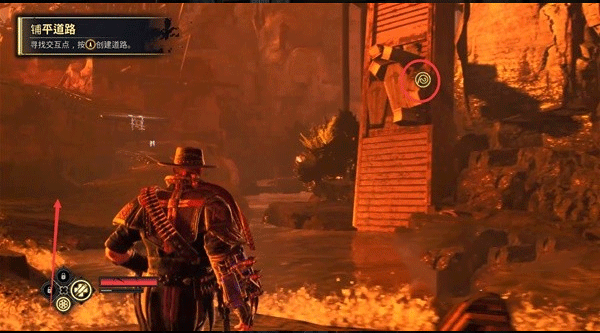 1、游戏地图中有很多发光的铁链,代表此处可互动,高处的特殊标记代表可使用特殊动作,比如钩绳。
