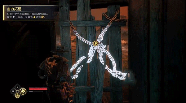 5、一路往前走,进入车厢后遇到挡路的铁链木板,挥拳可击碎。有些时候击碎这种铁链木板可以发现隐藏的支路。