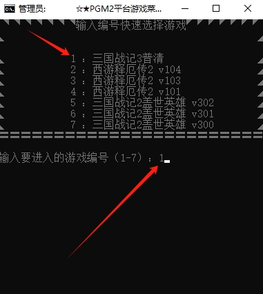 3、输入三国战记对应的编号1,然后按下回车键。
