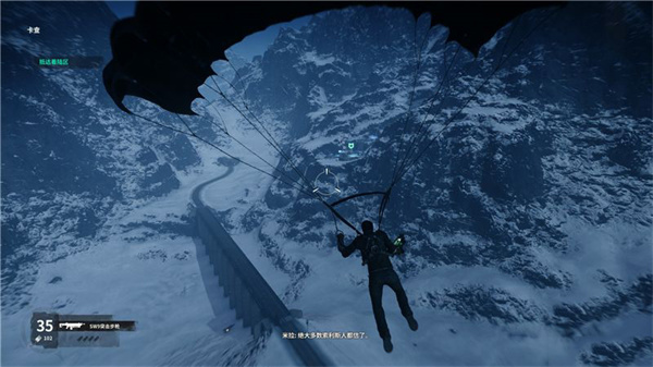 接着是使用降落伞到达远处的山峰。