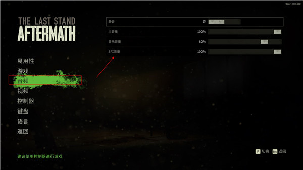 4、在“音频”中能够设置是否静音、主音量、音乐音量、sfx音量等;