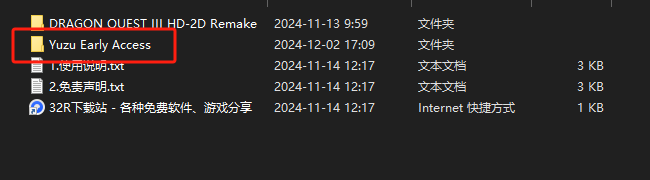 1、在本站下载解压好压缩包之后,点击“Yuzu Early Access”文件