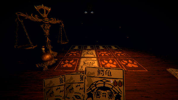 除了卡牌对战之外,《Inscryption》还加入了身临其境的模拟元素。玩家可以在小屋中探索不同的房间,与小屋中的各种生物互动,收集物品和线索,并揭开小屋背后的秘密。