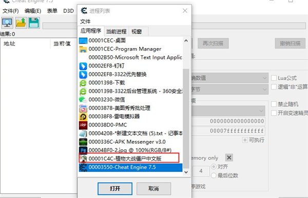 2、打开植物大战僵尸之后打开Cheat Engine 7.5这个文件夹。打开此应用(Cheat Engine);