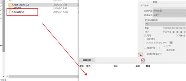 3、将S4.CT文件拖入 此应用(Cheat Engine)注意必须要拖进下边的框子里;
