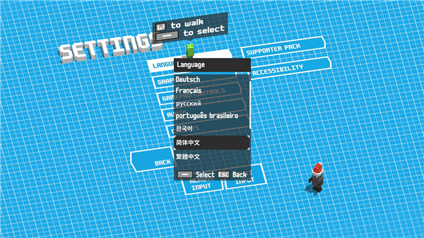 3、默认初始语言为全英文,进入游戏后选择“SETTING”,然后在“LANGUAGE”中找到简体中文即可完美替换;