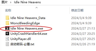 2、双击“Idle Nine Heavens.exe”,开始运行游戏