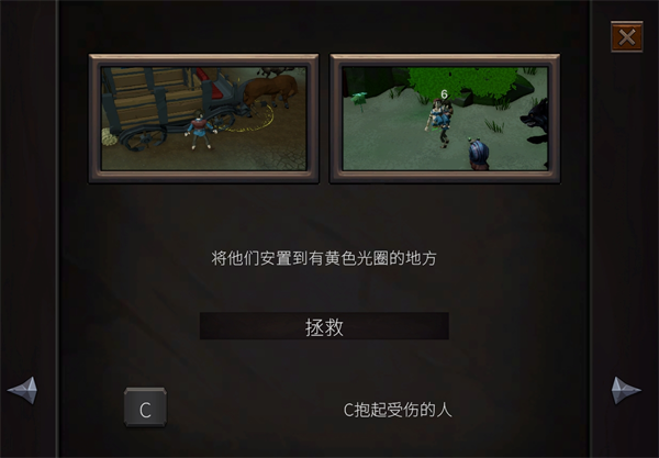7、拯救受伤的NPC时按C键抱起受伤的人,可以放入黄光圈中。