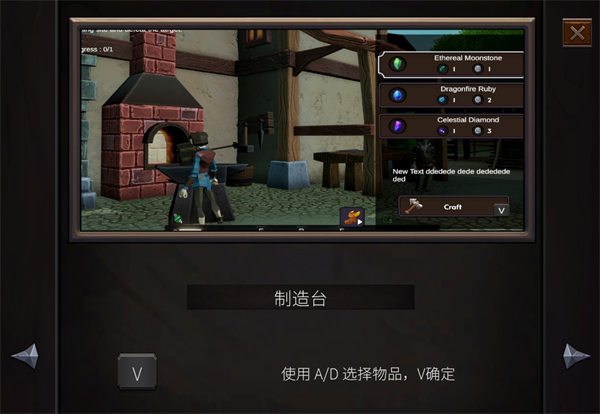 5、制作台锻造靠近时按V键确认,A/D切切换锻造物品。