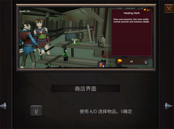 4、与商人进行交易时按V键确认,A/D键切换物品。