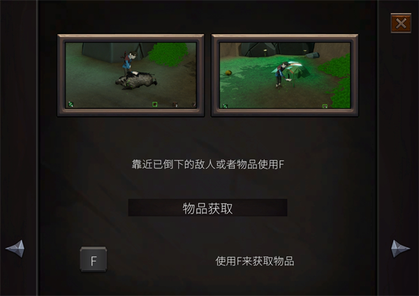 6、击败倒地的敌人或物品时按F键可以进行收取身上的物资。