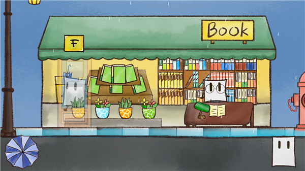 雨天电脑版游戏设计了许多店铺,如冰淇淋店、面包店、书店等,玩家可以进入躲避雨水,而且有些店铺内的暖气能将一张纸身上的雨水烘干。操控一张纸向右一直走回家吧!