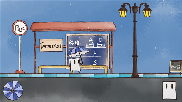 《雨天电脑版》是一款卡通手绘风的游戏,主角是一张厌倦下雨天的纸人,玩家需要操控它在下班路上避开飞溅的水花,并用伞保护它回家。游戏里有很多车辆和店铺,比如冰淇淋店、面包店和书店,这些地方可以用来避雨和烘干。伞会因为使用次数太多而损坏,如果纸人被淋湿太多次就会失败。