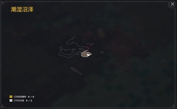 首先我们要进入潮湿沼泽(Soggy Swamp)这张图,难度皆可,由于需要正常过图,想要快速一点的同学可以选择难度默认I。由于潮湿洞穴为随机刷新,不是每一次进去都有的。而有潮湿洞穴的图是有隐藏箱子的。进入潮湿沼泽,按M打开地图,发现已找到隐藏物为0/0,说明这把是没有潮湿洞穴的,我们可以退出关卡回到营地重新进入。