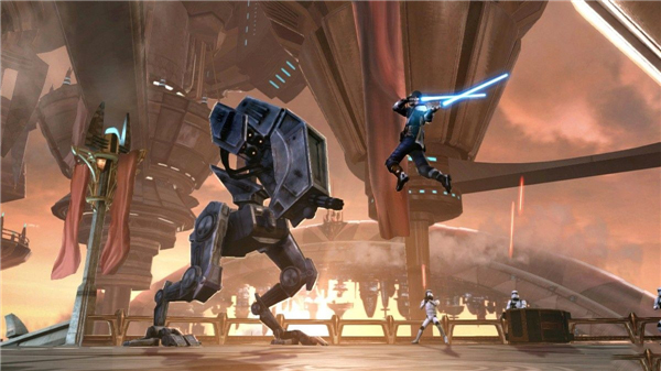 接下来遇到的敌人只是用光剑打的话他们会防御,也会反击,可以先放电攻击,然后光剑砍,也可以直接XXY打,很简单的敌人。