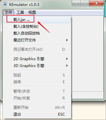 先下载Java软件:菜单栏 → 文件 → 载入jar 或者直接拖放到 KEmulator 里面。